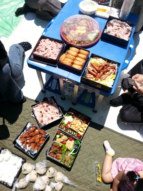 弁当作りを途中にして、朝6時に、運動会の場所取りに走る!