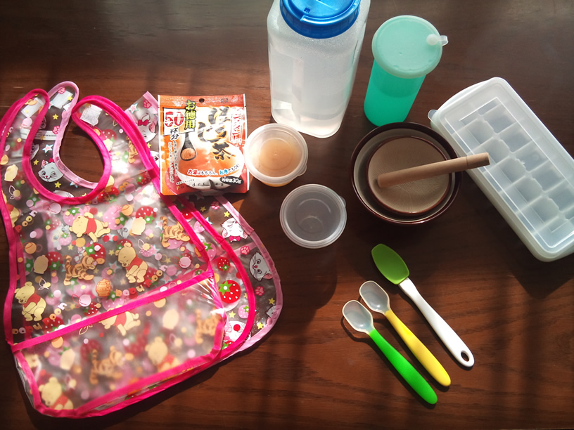 離乳食・・・こんな感じのグッズを使って、がんばってます。