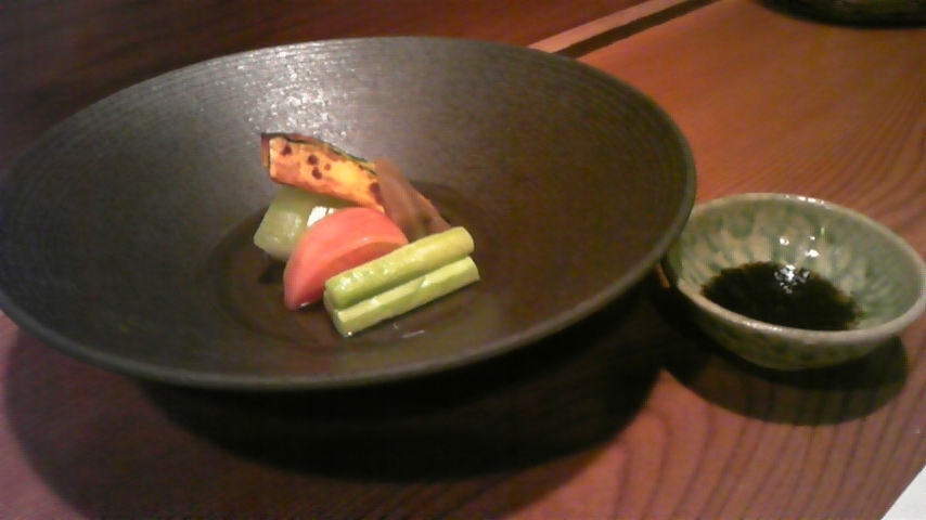 野菜のお刺身といってもいいと思うのですが、非常にシンプルで、野菜本来の味が堪能できるといってもいいかもしれません。夏にピッタリ♪