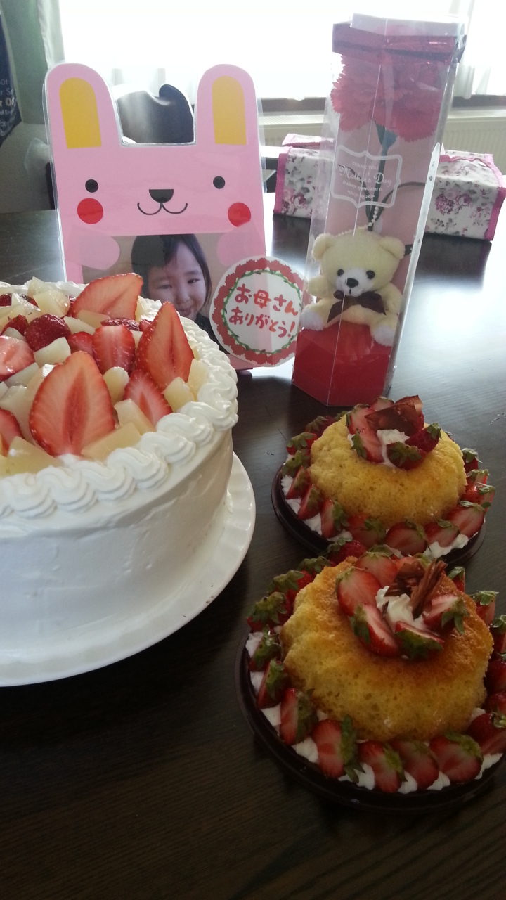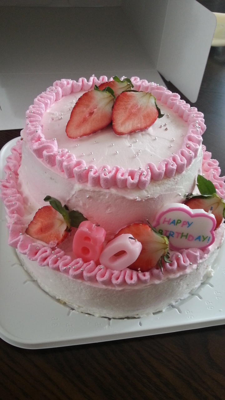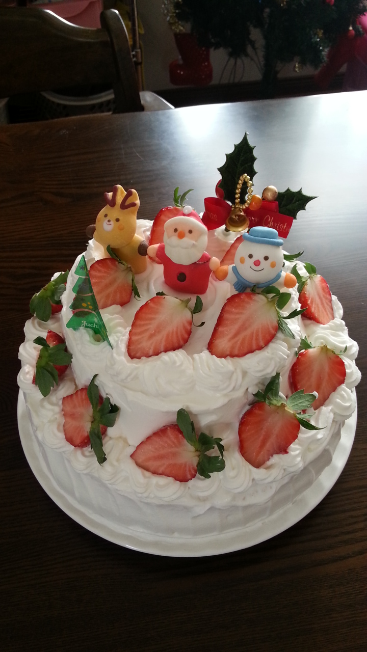 年末ということで、うちの母の誕生日のケーキは、今回2段重ねで 可愛らしく。