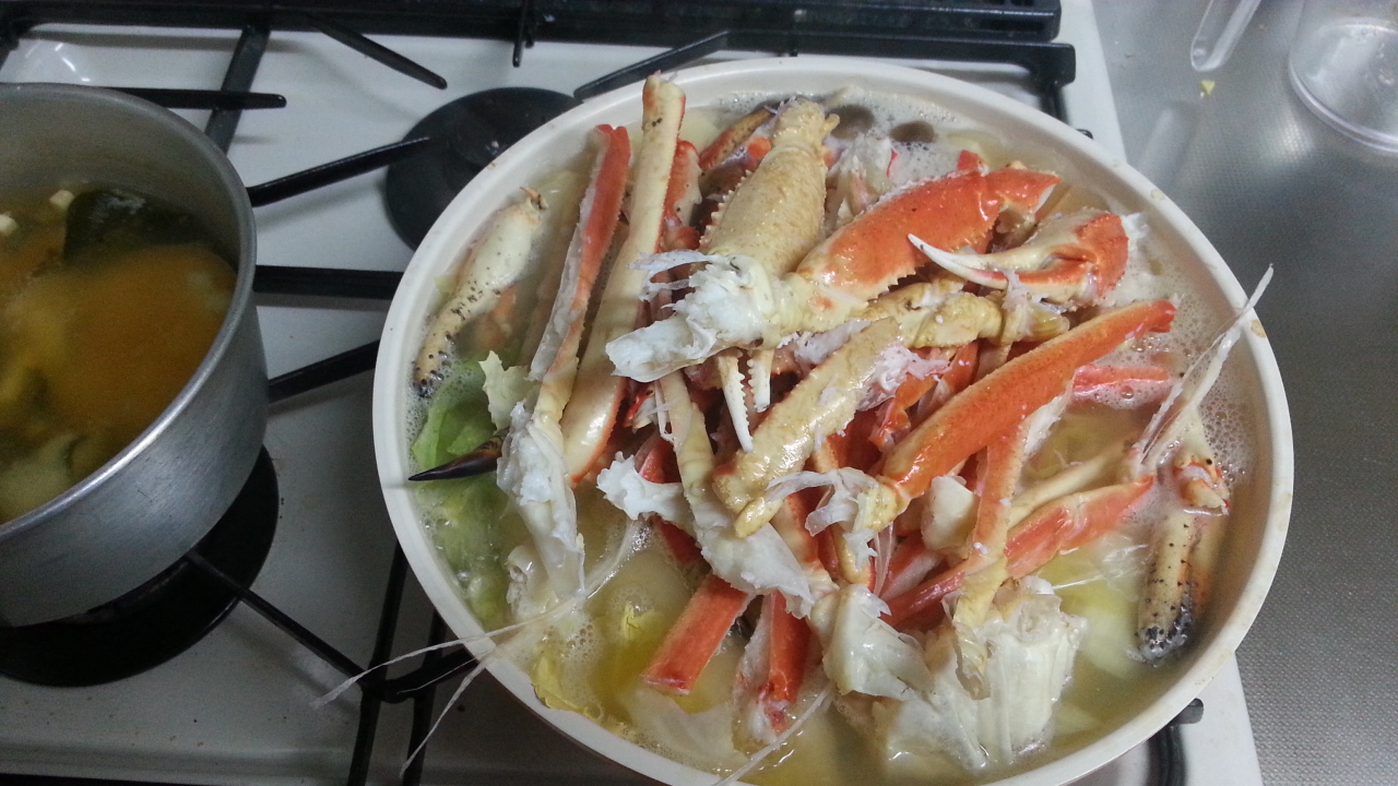 あとは~実家でカニ食べて、余ってるものをいただきまして~カニ鍋!