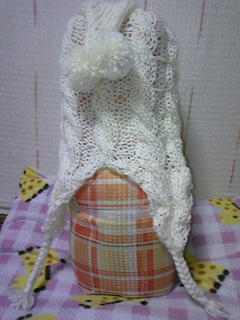 昨日の夕方から、編み編みしてた、娘の帽子完成しました♪