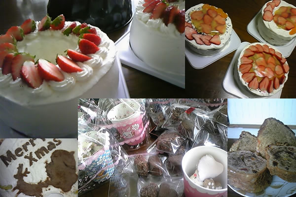右上~こちらも2009年のクリスマスケーキ。自宅用、学童保育用、実家用の3つを制作。1番上の飾りは、寒天だったりします。