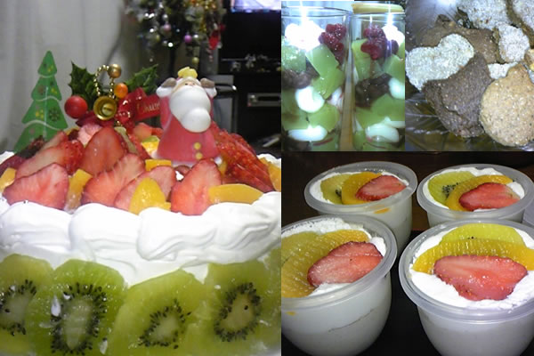 左は、今年のクリスマスケーキ。ココアのスポンジの間に、バナナムースをはさんでいます。これがなかなかのヒット!