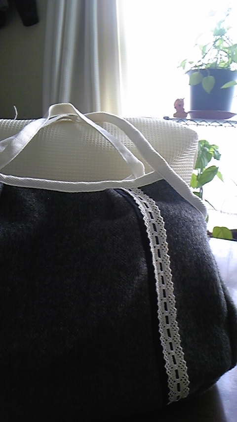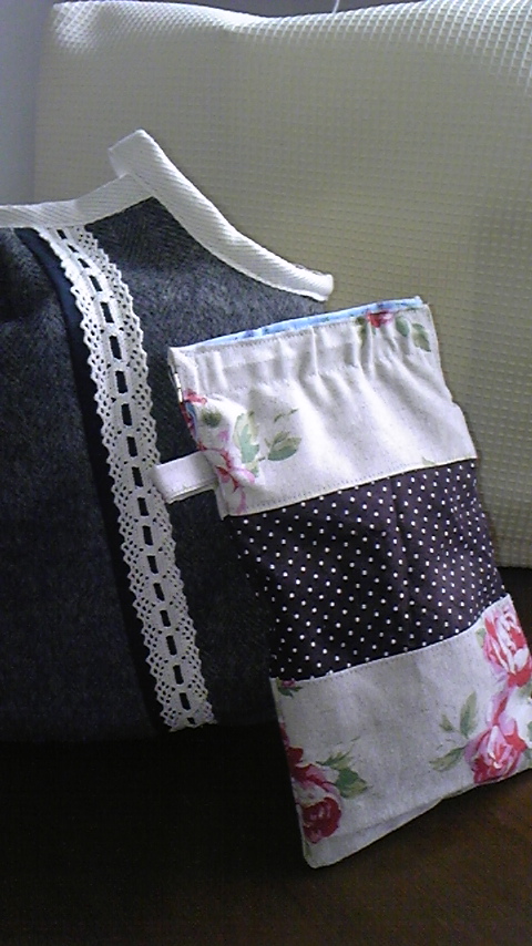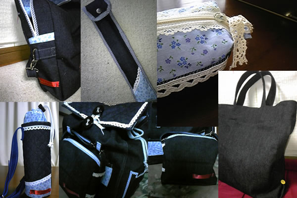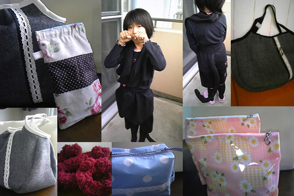 左上から~書道用のバッグです。かなり大きく作りすぎたことと、接着芯を使わなかったこともあって、フニャフニャなのですが・・・娘が使用中です。