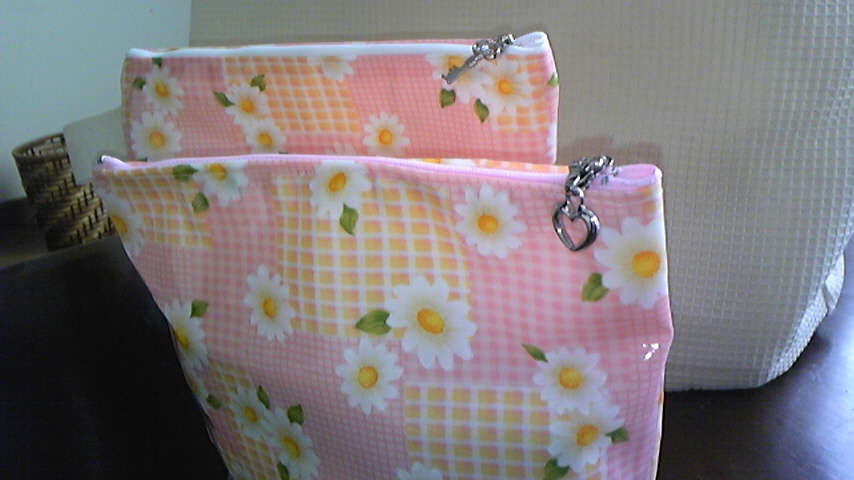 右下4~ビニールコーティング生地で作ったポーチ2種。