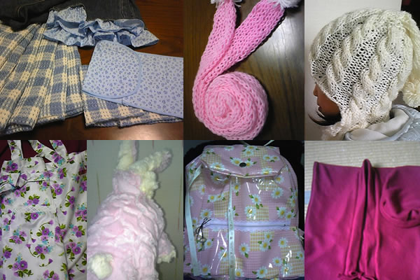 右下4~父の還暦用のちゃんちゃんこ。こちらは、ミニではなく、大きなもの。フリースを2枚仕立てで作っています。帽子も添えて~。