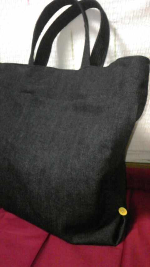 でも、あんまり 何もなさすぎて・・・寂しいんで、底の折りあげた部分を黄色いボタンで留めてみた!(笑)