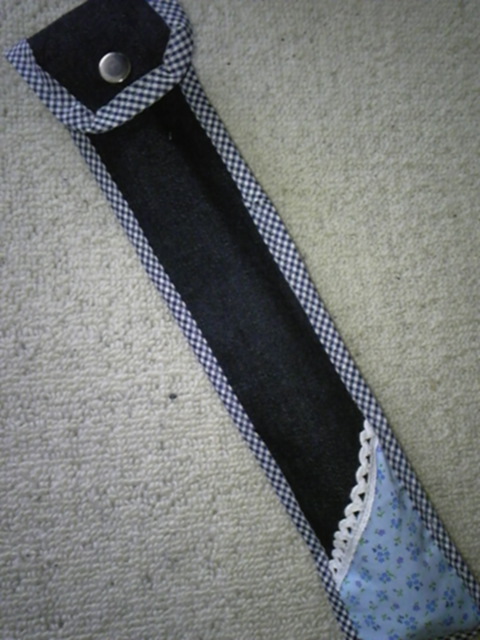 ちなみにですね~後ろ側の斜めの花柄部分は、小さなポケットにしていて、リコーダーについてきた、グリスを入れられるようにしてみました。