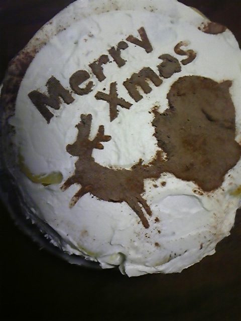 ↓ 今回作ったケーキ。ココアをふって 型抜きしてみました。